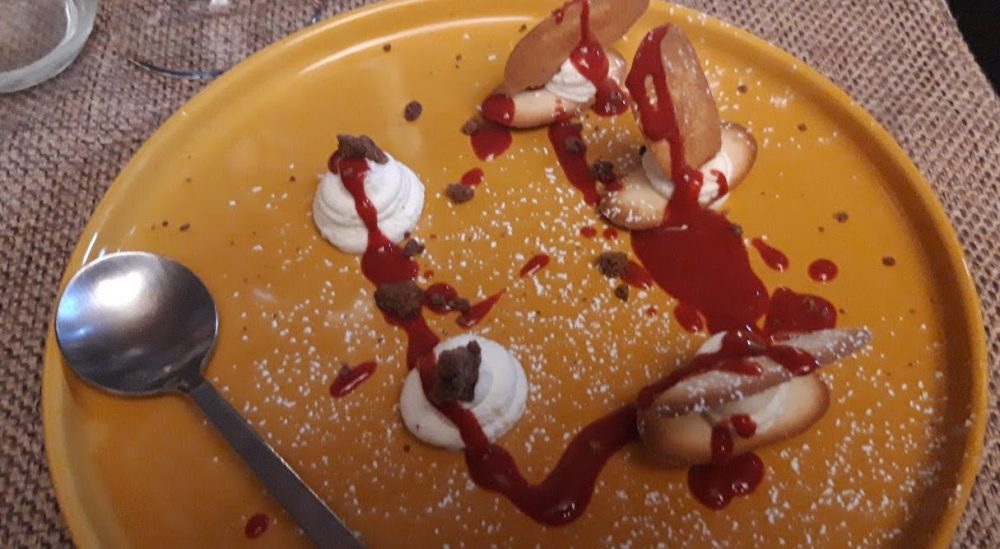 Non mancano antipasti, taglieri e primi sempre a seconda del periodo dell’anno: particolarissimo il gusto della polenta con podlico e tartufo nero e la croccantezza del carciofo dorato e fritto con patate, polpette di maialino, pecorino e riduzione di salsa barbecue.