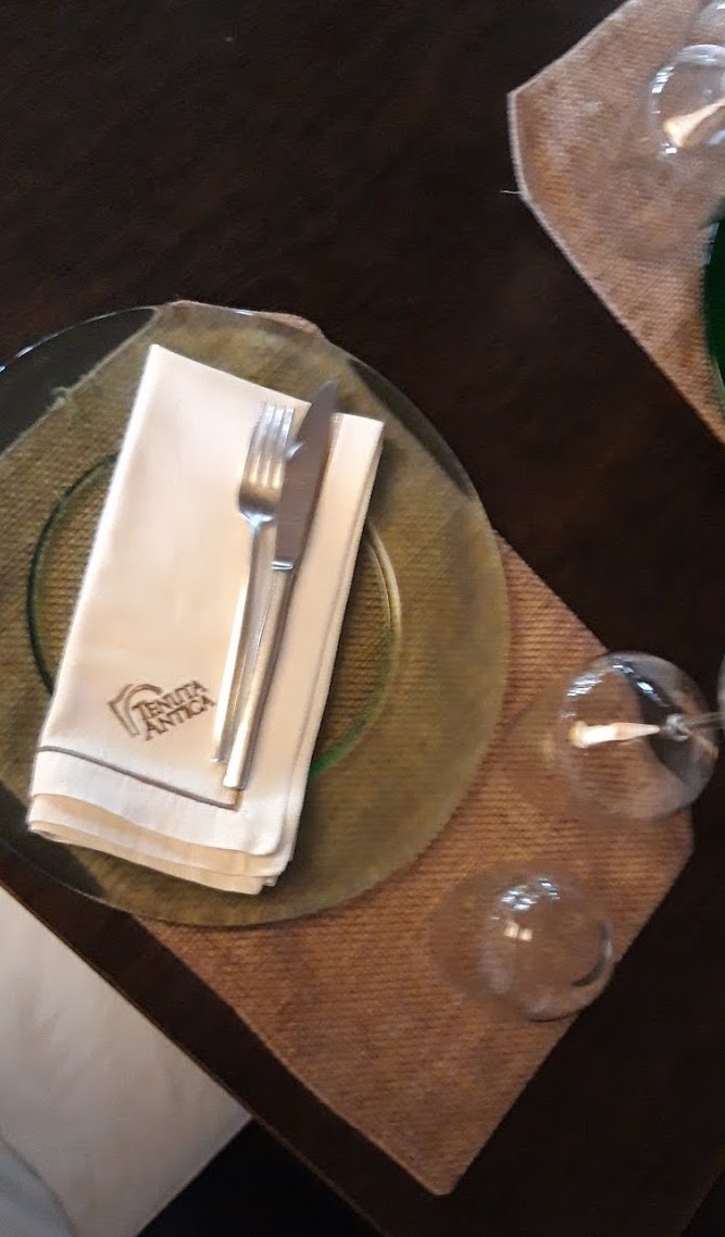 I fratelli Annabella e Daniele D’Elia accolgono alla Tenuta Antica di Cava de’ Tirreni gli ospiti con gentilezza, tra antichi oggetti d’arredo che richiamano le tradizioni agricole e contadine tramandate da generazioni, tovagliato il lino sulle nuance del beige e marrone con tovagliette americane in tinta.