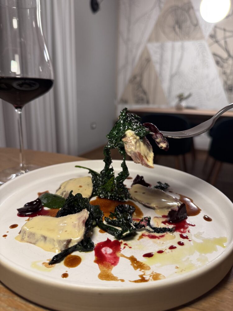 Si va dal pancotto alla cicoria, al capriolo con cicoria scottata e frutti rossi fermentati, passando per il tortello alla cacciagione fatto con cinghiale, capriolo, lepre e fagiano.