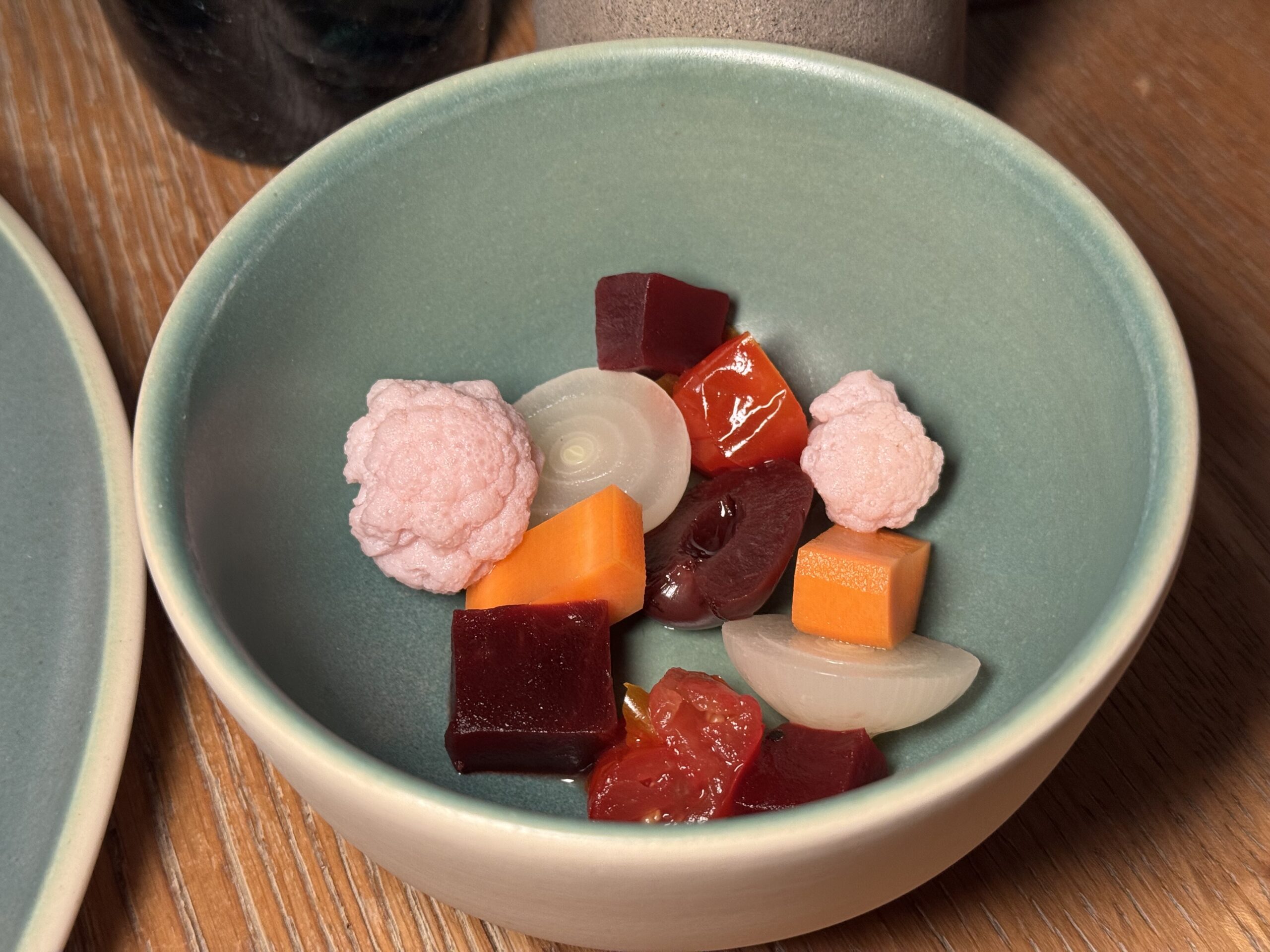 La sala ristorante, accogliente e ben curata, è incastonata in quello che un tempo era il cuore del borgo ottocentesco, oggi restaurato con grande rispetto. L’atmosfera è intima, il servizio familiare ma attento, e la carta dei vini – prevalentemente umbri, con belle incursioni nazionali – accompagna con equilibrio un menu degustazione che può variare dalle tre alle sette portate. Due i percorsi principali: “Approccio”, più diretto ed essenziale, e “Paesaggio”, più ampio e articolato, pensato per chi vuole lasciarsi guidare in un vero viaggio sensoriale.