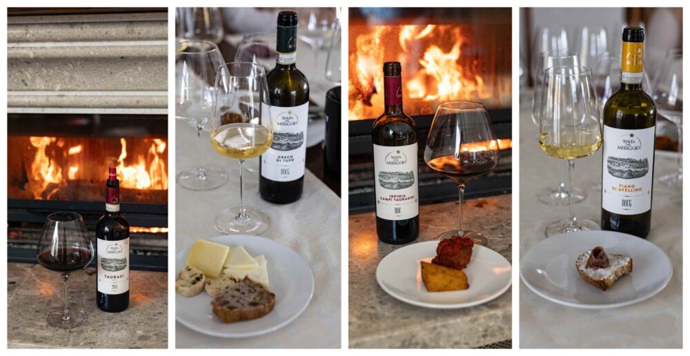 Proseguiamo con i bianchi della Tenuta, abbinati a una lasagnetta di verdure del territorio, e poi con i rossi, serviti insieme a salumi e formaggi irpini. Ogni calice racconta una storia diversa, una sfumatura del territorio, una sfida agronomica, un’idea di vino precisa.