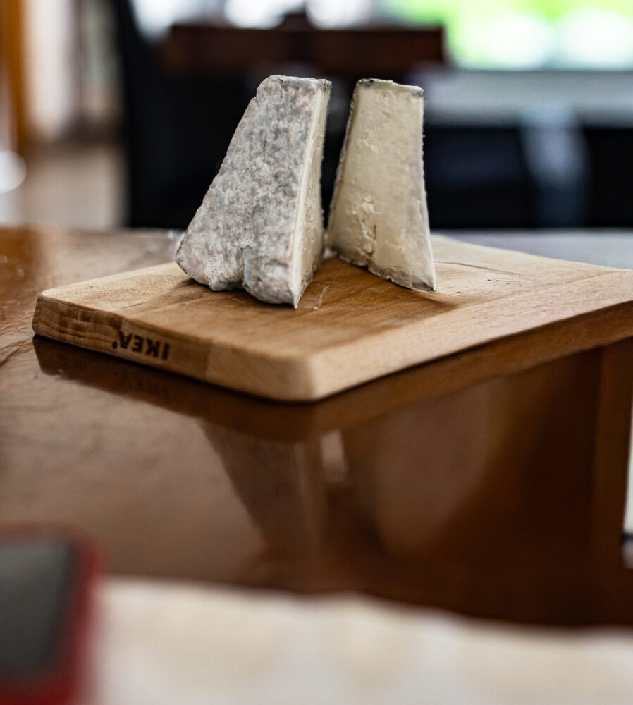 Rientriamo in azienda mentre il cielo si tinge di rosa e arancio. Un camino acceso ci accoglie nella sala degustazione e crea un’atmosfera calda e familiare. La degustazione inizia con la bollicina, perfetta con una frittatina di maccheroni e sorprendentemente delicata anche con formaggi freschi.
