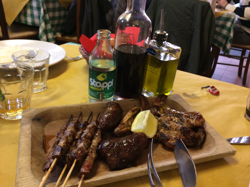 La Tavernetta – arrosticini – salsiccia di fegato – cosciotto di agnello con gazzosa e Montepulciano