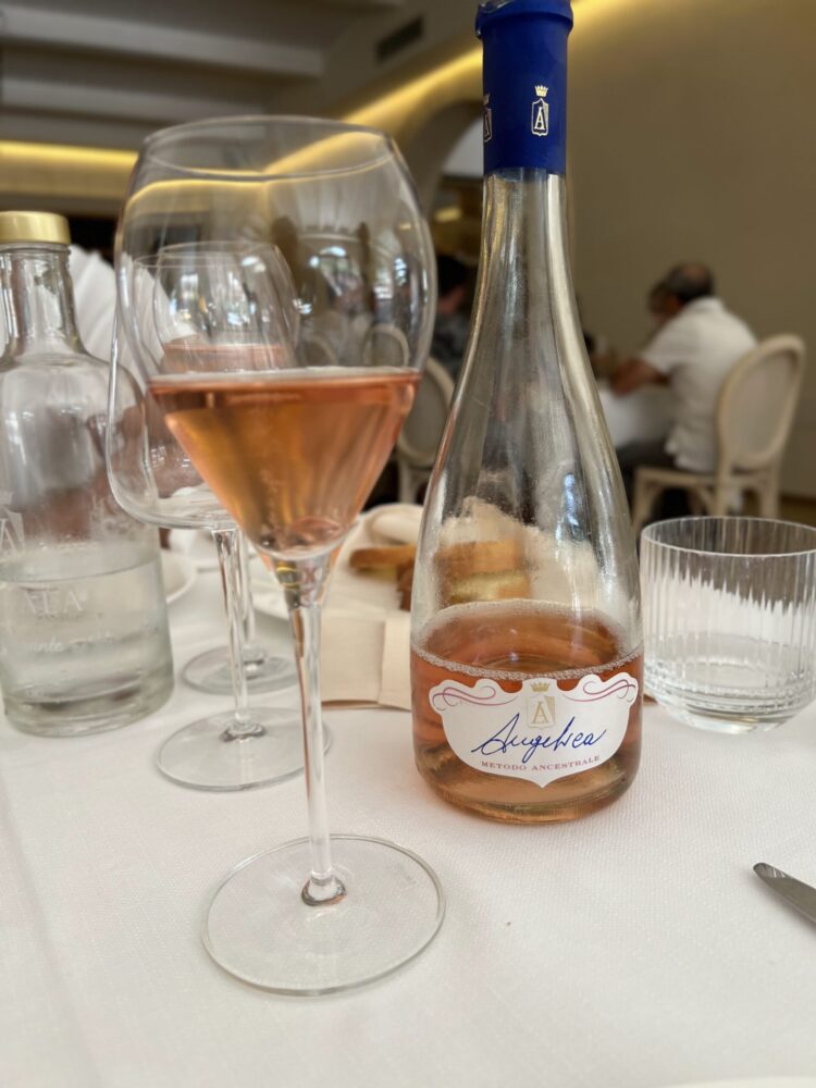 Quest’anno Angelica, mi presenta, la loro ultima creatura, un vino inedito che nasce per arricchire la loro cantina, un vino fresco, autentico, allegro, prodotto con metodo ancestrale che preserva tutte le caratteristiche naturali del vino, completamente naturale senza solfiti né zuccheri aggiunti, “un vino che spiazza perché capriccioso e frizzante come me”, mi confida, sorridendo. Con una spuma soffice e lieve, si presenta con un bouquet che ricorda il lampone, sfumature di agrumi e tipici sentori di crosta di pane, al palato ha un attacco esuberante e vivace, un vino molto versatile, ideale come aperitivo.