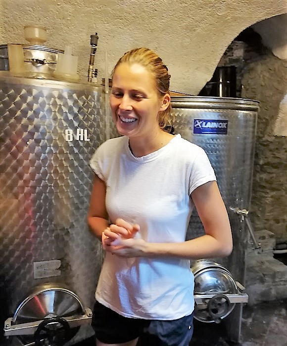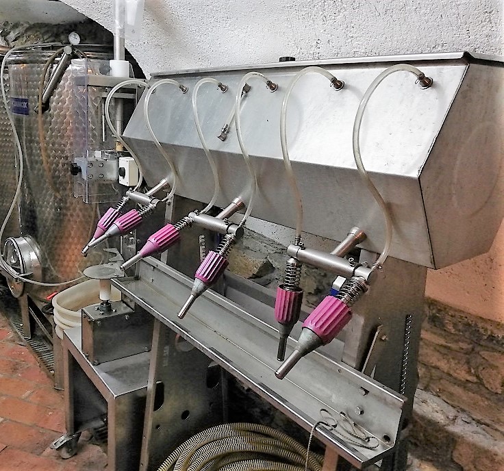 La cantina è quanto di più semplice possa esserci: alcune vasche d’acciaio, un tonneaux usato, un’imbottigliatrice manuale, un torchio di legno.
