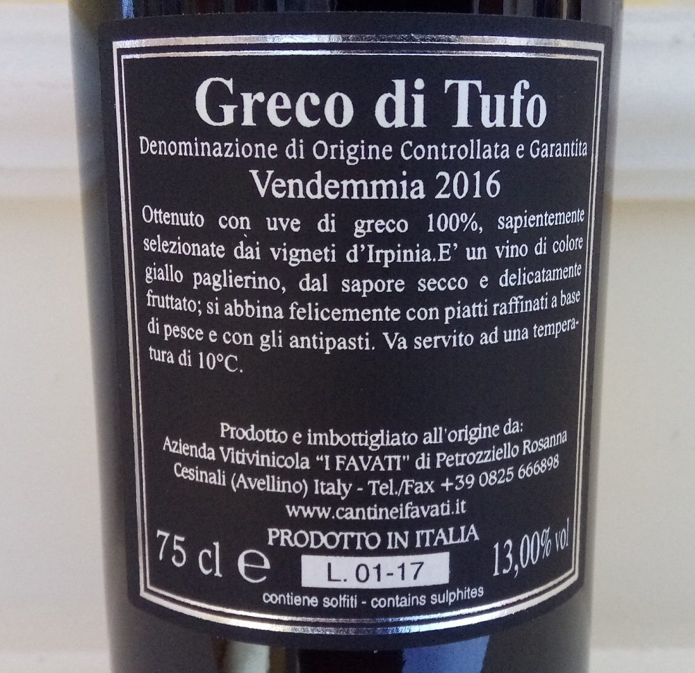 In attesa di poter degustare il Fiano vincitore per il Gambero Rosso, ho assaggiato il Terrantica Greco di Tufo Docg 2016. Cinque i mesi trascorsi in acciaio inox e poi affinamento in vetro. Tasso alcolico di tredici gradi. Prezzo della bottiglia in enoteca sotto i 20,00 euro.