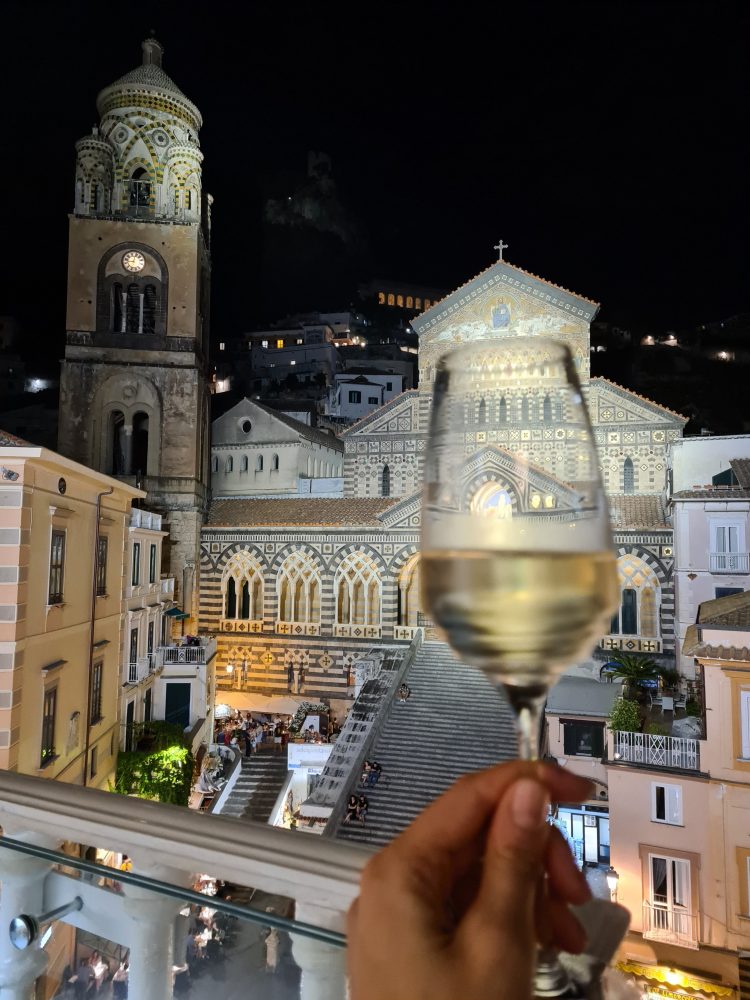 La vista è spettacolare. Incanta ogni volta. La veranda che affaccia sul Duomo di Amalfi, e che all’ora di cena consente di godersi una quiete quasi surreale, quando i turisti mordi e fuggi hanno preso il largo con l’ultimo traghetto.