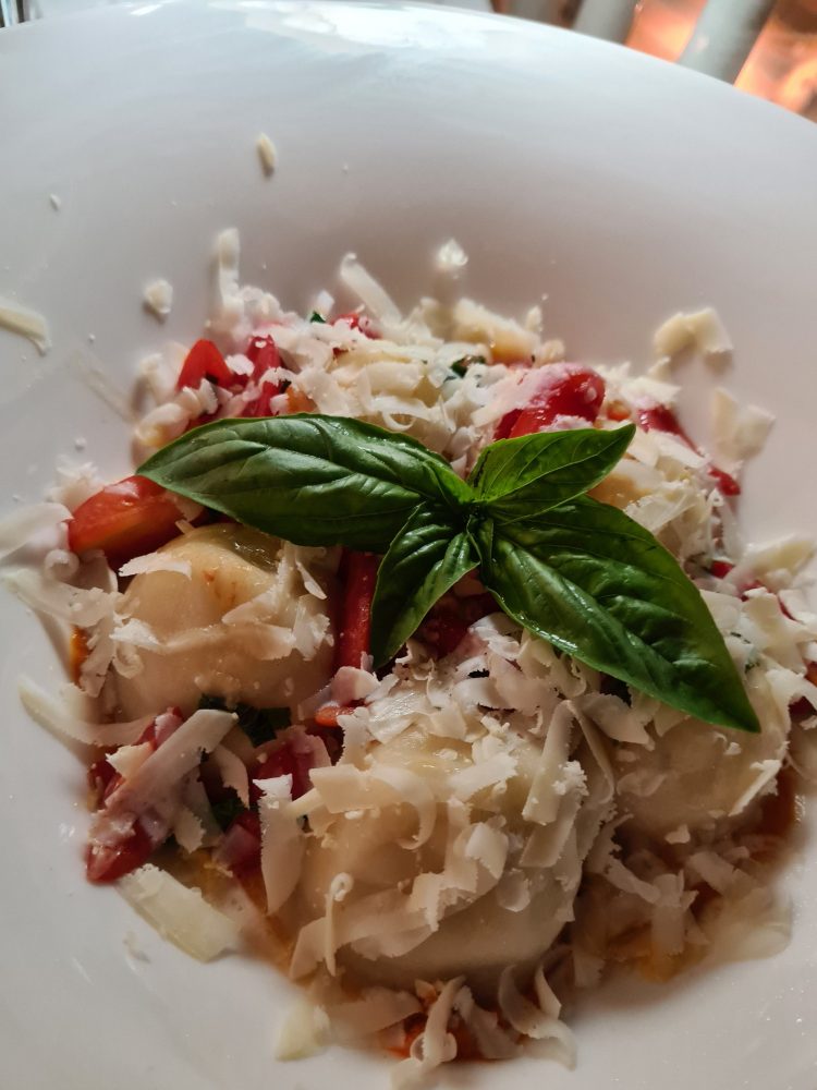Ci sono poi i ravioli, tirati a mano, ripieni di ricotta di capra con pomodorini datterini e basilico.