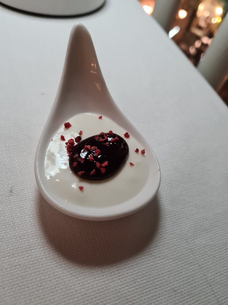 Il pre-dessert è al limone e alterna l’acidità dell’agrume ad una marmellata di frutti di bosco con polvere di fragola disidratata mentre il dolce, da non perdere, è Terrazza Duomo Gran Dessert, una sorta di collage di quasi tutti i dessert in carta, mentre per gli amanti del cioccolato c’è il tronchetto al pistacchio con amarena e cioccolato bianco.