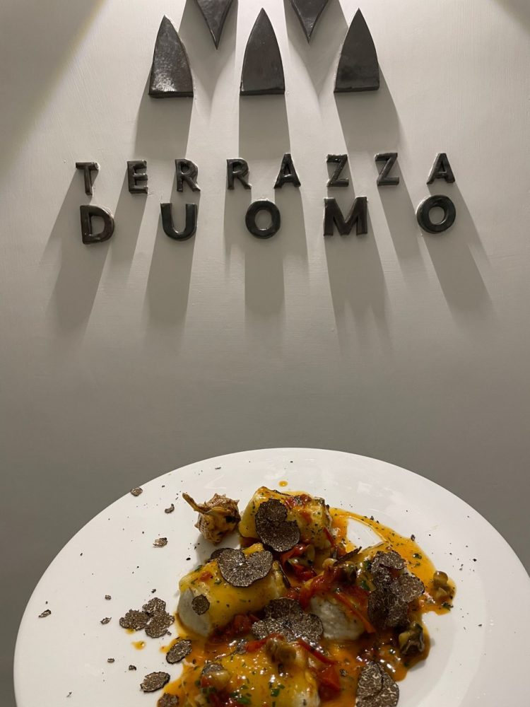 In realtà il ristorante Terrazza Duomo, al quale si accede da uno slarghetto appartato, dopo una serie di scalini quasi nascosti, riesce a tenere insieme l’attrattiva di un posto esclusivo con una accoglienza familiare e genuina.