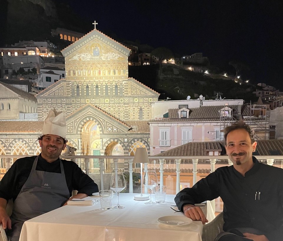 In cucina, da più di quattro anni, la mano solida di Salvatore Milano, professionista con diverse esperienze alle spalle che è riuscito a dare un’impronta originale a piatti che raccontano il mare locale e prodotti dell’orto, con piacevoli rimandi alla tradizione campana. In questa stagione si avvale della collaborazione del sous chef Benedetto De Luca, al ritorno da tappe importanti all’estero, qui ad Amalfi per passione ed affetto.