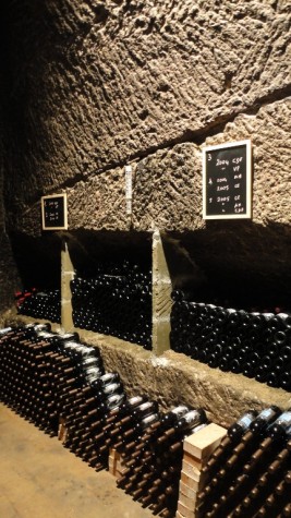 La temperatura, laggiù, si mantiene costante tutto l’anno a 10° con 85 ° di umidità, senza gas né serpentine, liberi come si dovrebbe da ogni termo condizionamento, dice – l’enologo consulente Luigi Moio, sì, perché il vino afferma – “deve invecchiare rimanendo giovane”, e “la temperatura è alla base di una buona evoluzione e questo luogo fa sì che il vino riposi in pace”- conclude.