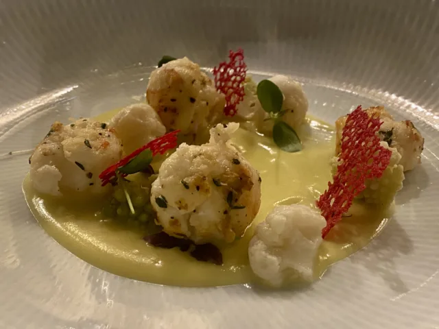 Sono capitata in una serata intitolata “Star Moving”, dove l’incontro con la cucina di Luigi Salomone, chef di Re Santi e Leoni di Nola, una stella Michelin, si è intervallata a quella del resident Umberto Zimbaldi. Una serata di scambio e di sinergia tra professionisti, dove i due stili diversi di cucina contemporanea hanno trovato un punto di contatto nelle portate, dalle quali è emersa la ricca biodiversità della Campania, con materie prime di mare, di orto e di terra che si sono alternate nelle portate dalla chiara impronta mediterranea.