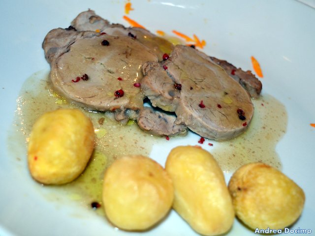 Proseguendo, ci è stato proposto un filetto di maiale brasato alla birra Efix (by Trincanotte) con bacche di ginepro, finocchietto selvatico, rosmarino e patate al forno.