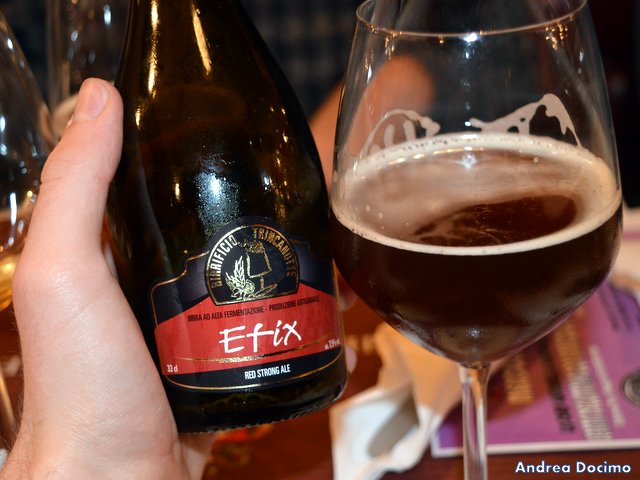 Buona la liaison con la “Efix” (7.2% abv.), definita come Red Strong Ale, che era, rispetto alle birre precedenti, più nelle corde della maggior parte dei commensali con i suoi sentori di frutti rossi e caramello al palato, oltre ad un naso volutamente speziato ed un buon corpo.
