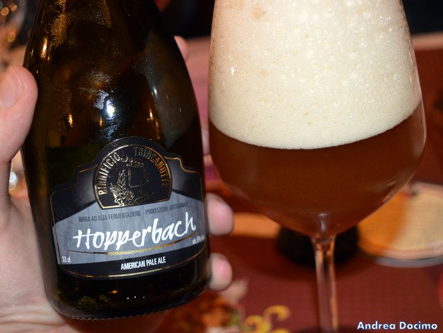 In abbinamento, la APA “Hopperbach” (6% abv.), a livello olfattivo agrumata ed erbacea come richiesto dallo stile, e che di fatto giocava con il timbro amaricante dei broccoli al palato.