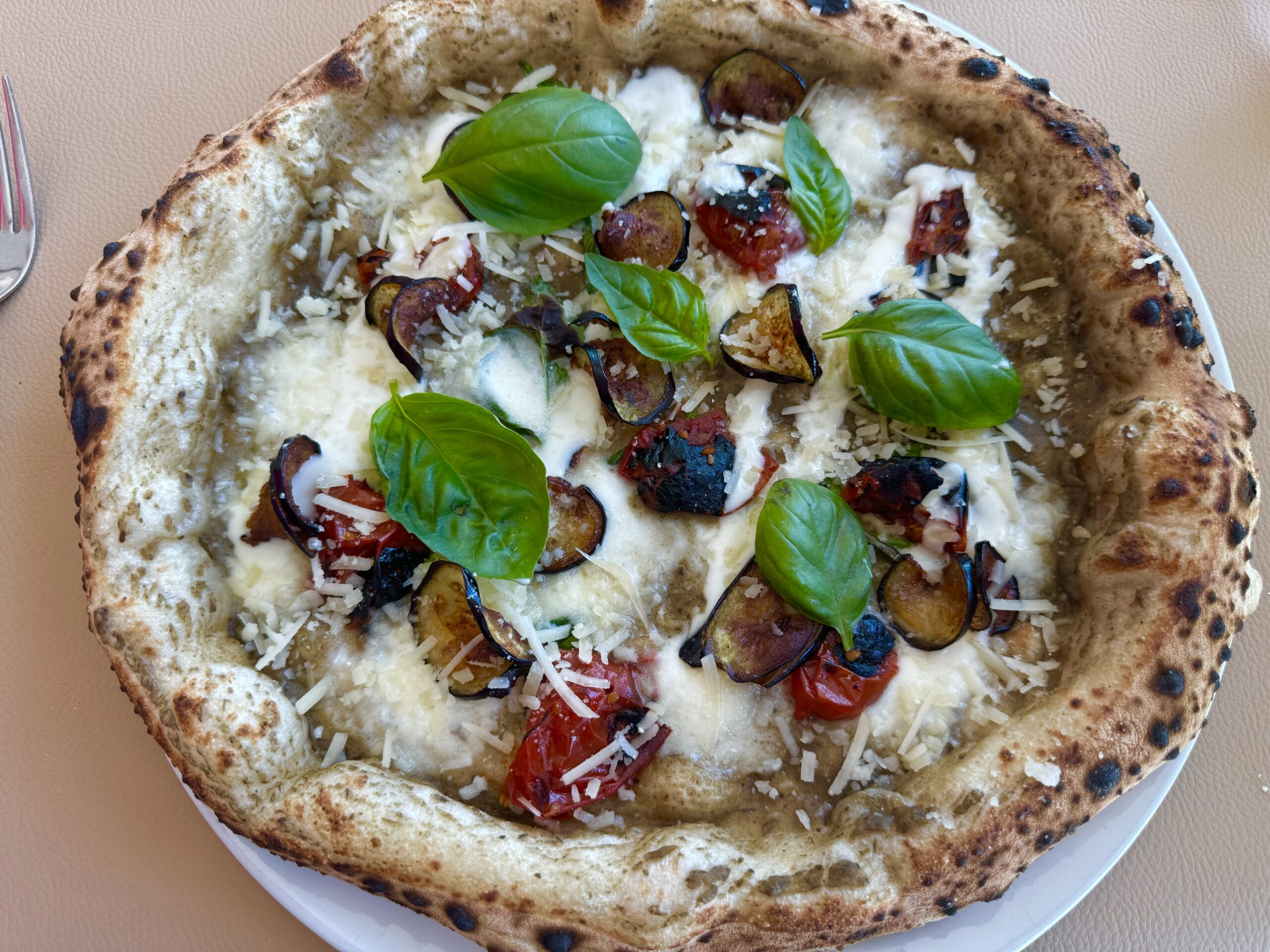 Parmigiana con crema e chips di melanzane, fior di latte, datterino rosso, fonduta di parmigiano e basilico – Tintarella 8/6/2024 Torna a: Tintarella di Luca Mastracci, l’arte della pizza in riva al mare a Latina Parmigiana con crema e chips di melanzane, fior di latte, datterino rosso, fonduta di parmigiano e basilico – Tintarella← PrecedenteSuccessiva →