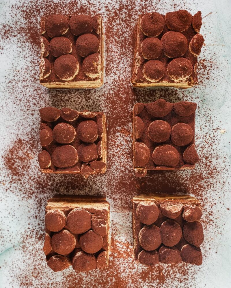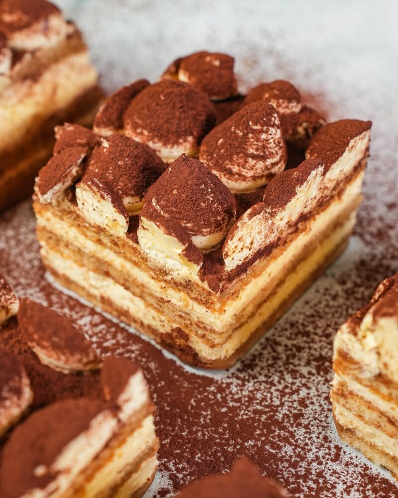 Soffice, cremoso e avvolto da una pioggia di cacao, questo dessert è un vero e proprio inno al gusto.