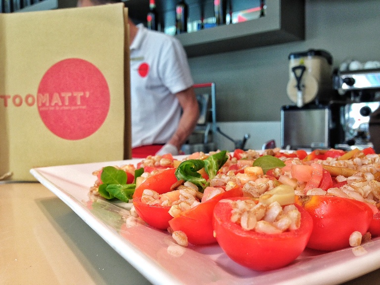 Insalata fai da te? o piatto unico proposto dallo chef? A Napoli tutti matti per il pomodoro. È questo lo slogan di Toomatt il patio bar & urban gourmet inaugurato nei giorni scorsi a Napoli. E così nel cuore della city, tra via Toledo e piazza Municipio l’ingrediente base della cucina mediterranea viene declinato in gustose pietanze, più o meno light ma tutte ad alto tasso di vitamine e antiossidanti.