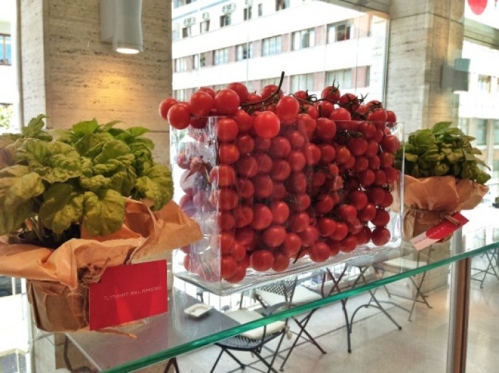 Toomatt, tutto nei toni del rosso con il packaging in tinta per il take away, le piantine di basilico e le cascate di pomodori in vetrina è la nuova struttura del Renaissance Naples Hotel Mediterraneo, con ingresso da via Ponte di Tappia.
