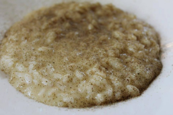 Un risotto cotto in un brodo di cipresso diventa come un riff di Keith Richards: istintivo, sorprendente, nervoso, con continui cambi di ritmo.