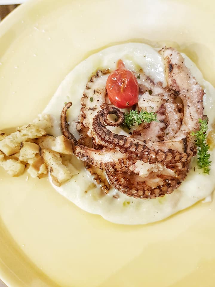 Tra gli antipasti, imperdibile è l’equilibrio al gusto del polpo arrostito su purea di patate e provola accompagnato a crostini di pane. Tra i primi piatti invece, disponibili anche in versione gluten free, sono un must le candele spezzate alla genovese ed il bucatino con il soffritto.