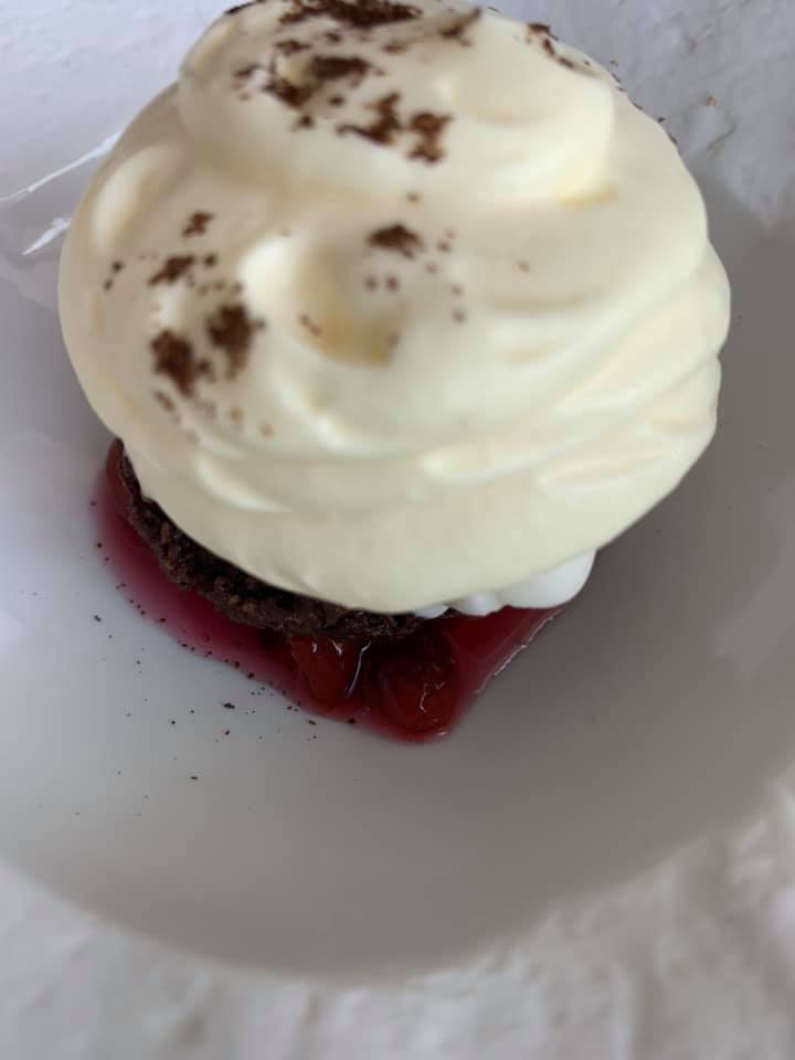 La Torre del Saracino – Zuppetta di amarene, grue di cacao, spuma di caffe’ e gelato al kefir di bufala