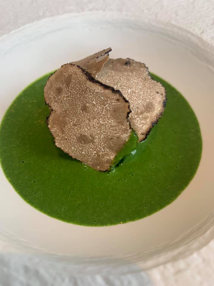 Gennaro Esposito – vellutata di spinaci con uovo in tempura e tartufo
