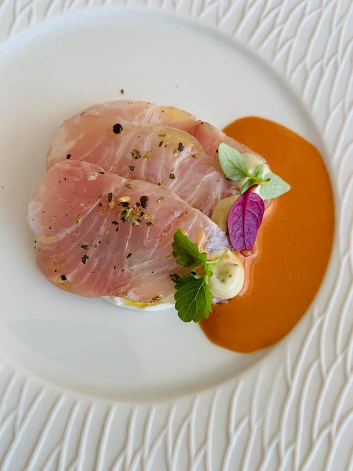 La Torre del Saracino -Carpaccio di ricciola, ricotta, capperi e zuppetta di tartufi di mare