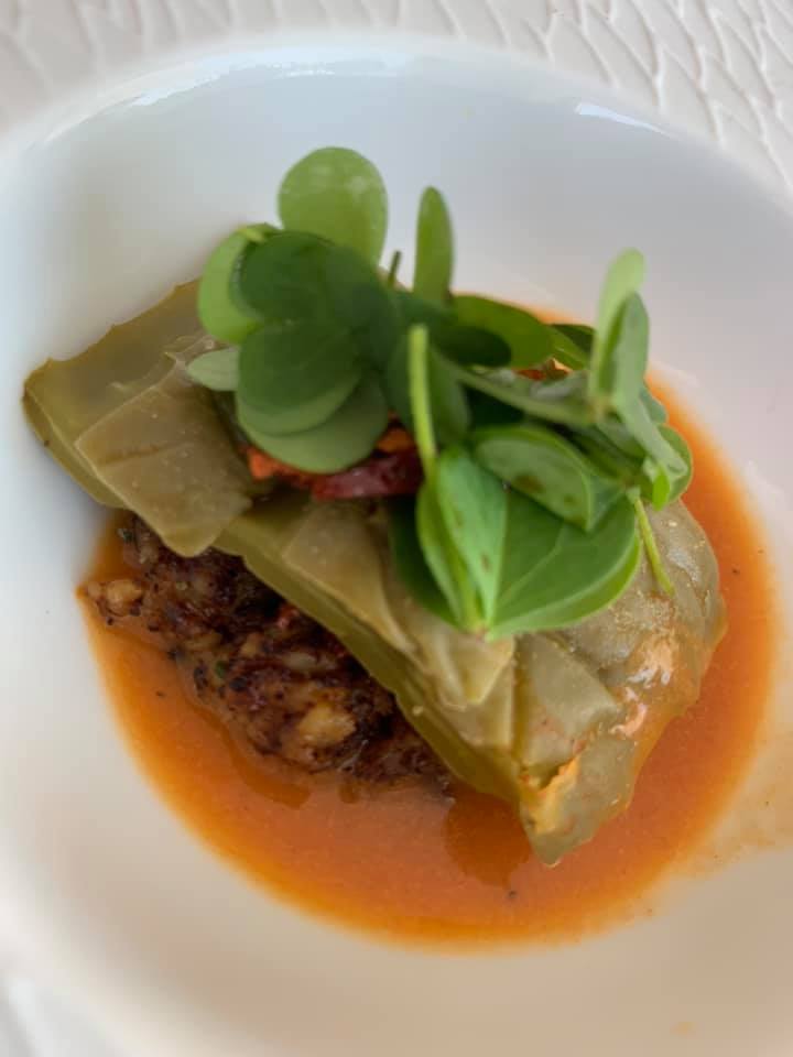 Torre del Saracino: cannelloni di vignarola ripieni di seppia e salsa di arance