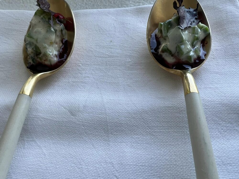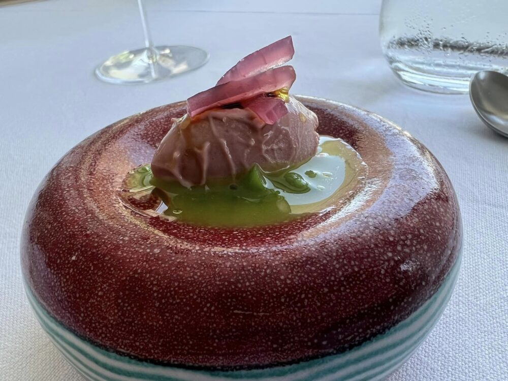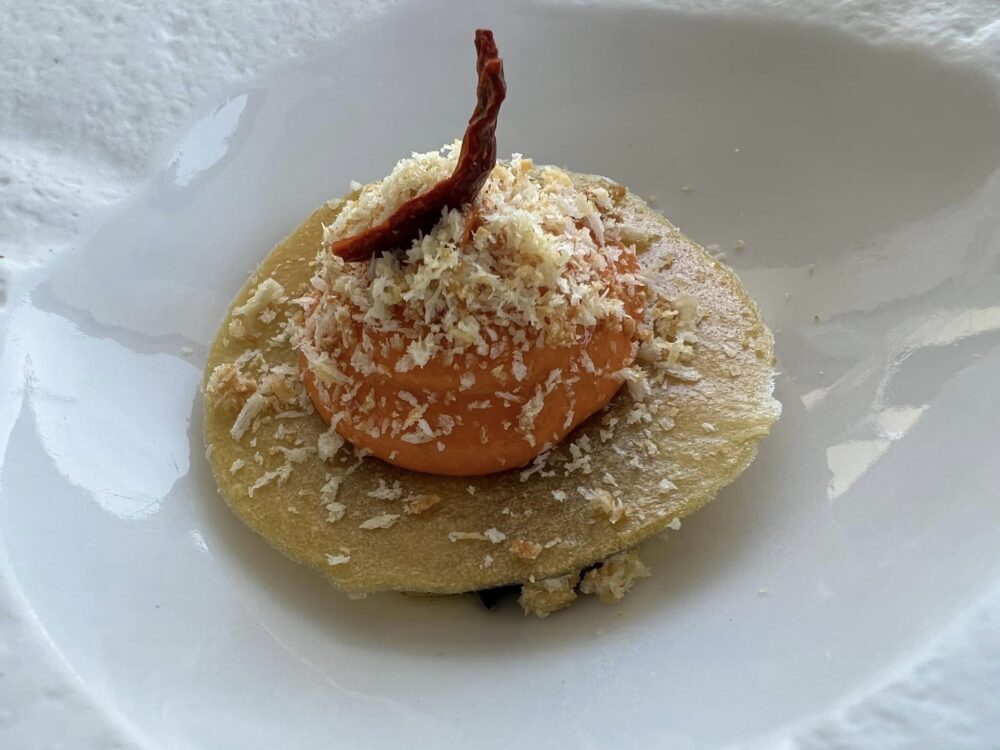 Torniamo come ogni anno alla Torre del Saracino, un bistellato che ha il grand pregio di restare aperto undici mesi l’anno e soprattutt non solo la sera. Risolte alcune questioni rimaste in sospeso, troviamo Gennaro Esposito nel pieno della sua maturità professionale, sereno e fiducioso con lo staff integro nonostante gli anni del Covid e la chiusura prolungata in Primavera.