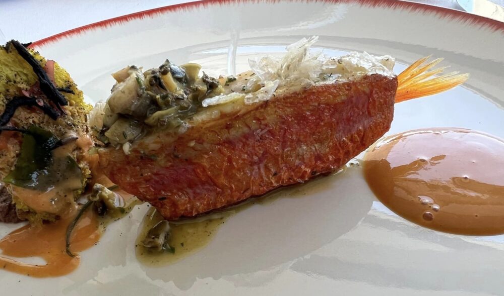 Gennaro Esposito – triglia croccante alla livornese con zucchetta napoletana e fasolari