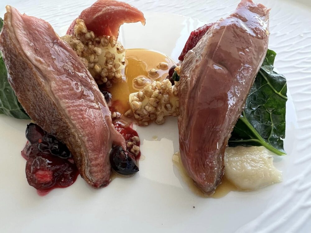 Il percorso di abbinamento con i vini è stato di altissimo livello, con inserimenti da vari paesi europei, annate vecchie di grandi aziende italiane e assonanze sempre indovinate: segno di grande capacità e consolidata esperienza.