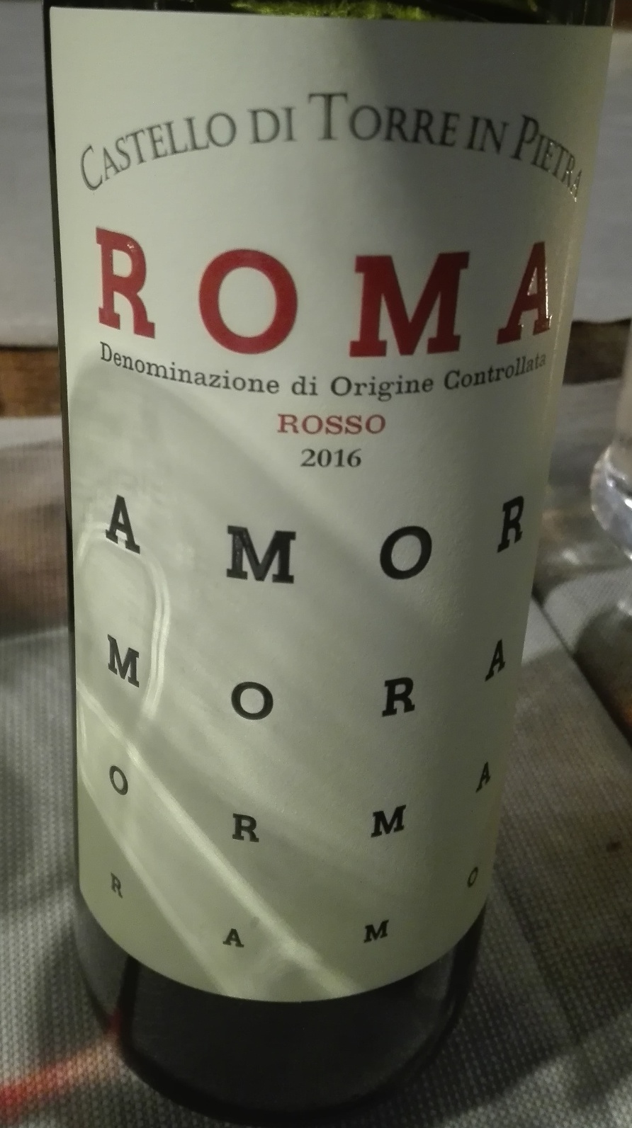 Roma Rosso DOC 2016; questo vino complesso ed austero è frutto di un blend di montepulciano al (50%), cesanese al (35%) ed un saldo di sangiovese; è un pò lento a concedersi, ma quando si apre propone profumi e sapori tipici dei vitigni, ha un ottimo tannino, è succoso e di buon corpo, non gli mancano freschezza, sapidità e speziatura finale.