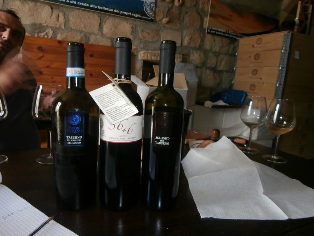 Aglianico del Taburno 36 + 6 Torre Varano 2006 : è il prodotto di punta dell’azienda nel quale ben si riconoscono le caratteristiche varietali dell’Aglianico del Taburno, mi è piaciuta la sua elegante rusticità e la tipicità da cavallo di razza che il tempo in parte doma. Colore rosso granato, denso e vivace. Sensazioni olfattive intense di pepe e tabacco, di ciliegia matura e in sottofondo di humus. Ampio al palato, complesso, strutturato e fresco, con bella chiusura tannica molto percepibile ma non particolarmente aggressiva. Uve selezionate raccolte ad inizio novembre , 30 gg. di contatto sulle bucce, 36 mesi di maturazione in botti di legno da 25 hl e 6 mesi in bottiglia.