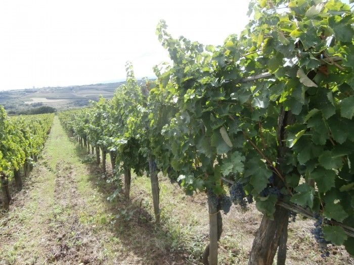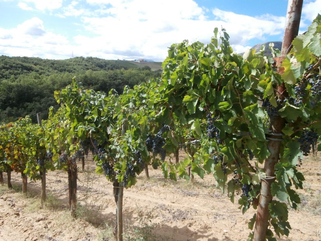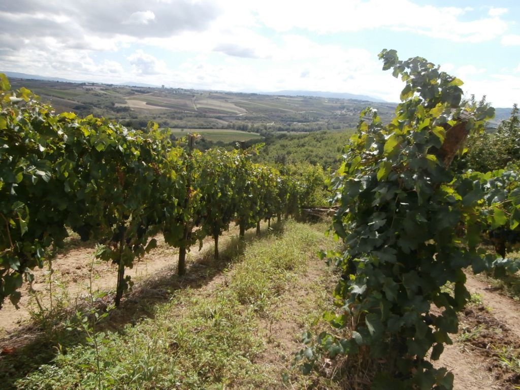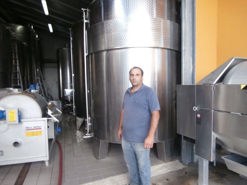 Abbiamo visitato alcuni vigneti di aglianico vicino alla cantina, coltivati a Guyot, con qualche appezzamento a raggiera, che viene progressivamente riconvertito. Nicola ha comunque constatato che in quest’anno di caldo torrido con un anticipo di vendemmia di 15 giorni , la raggiera ha protetto di più le uve rispetto agli allevamenti a spalliera. Siamo ad un ‘ altitudine di 250-300 metri, con terreno argilloso-tufaceo, in prossimità del fiume e ciò in parte determina i trattamenti nei vigneti che prevedono anche l’utilizzo di sistemici sebbene in quantità contenuta ( 2 /volte l’anno) in una sorta di trattamento ecocompatibile . Segue la vinificazione e la coltura della vite Sergio Romano di Ottaviano.