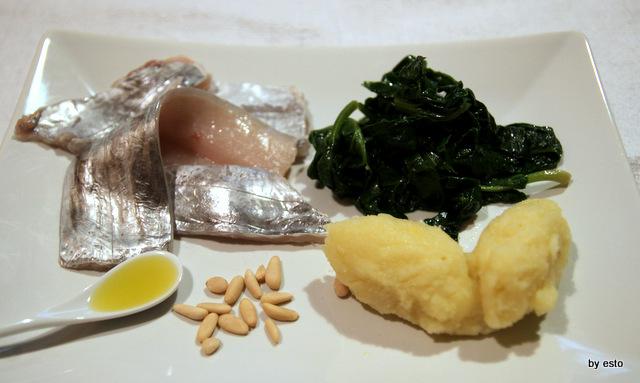 Tortino di patate, spinaci e pesce bandiera
