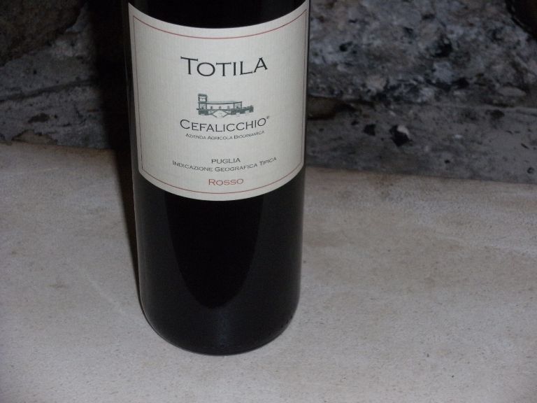 Tra le molteplici proposte presentate, ho scelto per la mia degustazione l’etichetta Totila Puglia Igt Rosso 2006, dedicata all’omonimo re ostrogoto vissuto nel VI secolo d.C., che nelle sue scorribande meridionali si fermò anche a Canosa, dove si narra che fu invitato a pranzo dal Vescovo Sabino. E’ un blend fitfy-fifty di nero di Troia e cabernet sauvignon, vitigni allevati sulle colline murgesi a circa 300 metri di altezza su un terreno calcareo, argilloso e ciottoloso. Il vino è transitato per due anni in contenitori di acciaio, ha sostato per altri due anni in tonneaux di rovere ed infine è stato affinato in vetro per altri mesi. La gradazione alcolica è di 13°C.
