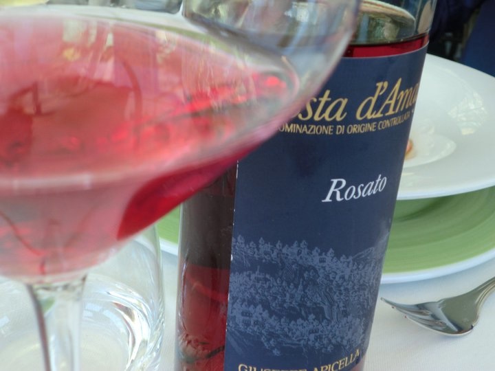 Un rosato, fresco e ricco di lampone, usa e getta per questa estate. Facile da bere, e da finire. L’osserviamo, sul tavolo di quattro inglesi arrivati a Lido Azzurro ad Amalfi per un pranzo veloce: pasta e pesce. Cosa scelgono? Il rosato che gli consiglia il buon Vittorio. Via una bottiglia, avanti con il bis, piaciuto. Anche noi non resistiamo e lo chiediamo.
