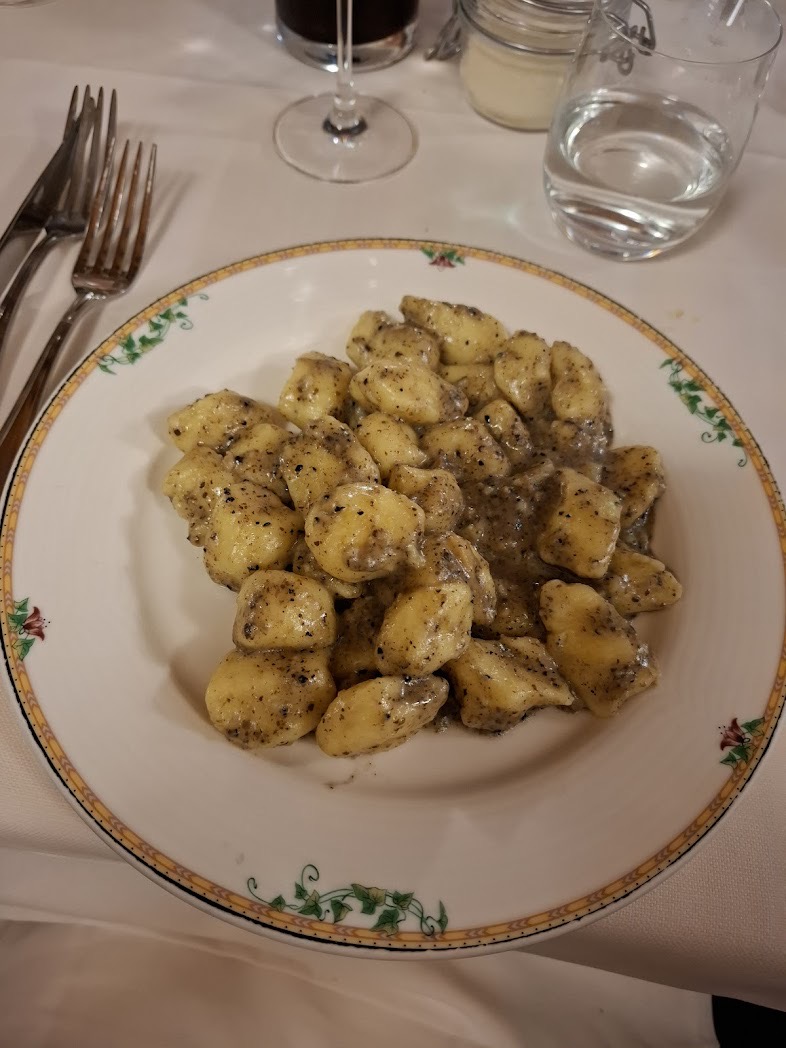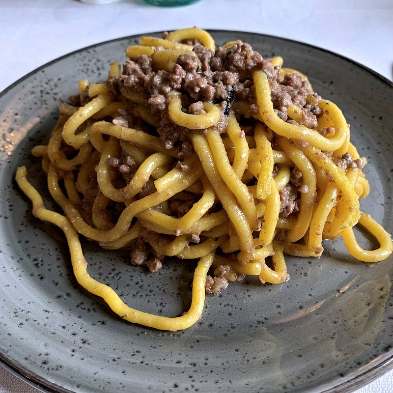 Bigoli con ragù d’anatra o con baccalà alla vicentina, ravioli al radicchio di Treviso con riduzione di Amarone e salsa di Asiago, tagliolini al ragù bianco di faraona e tartufo nero dei Colli Berici: piatti che muovono dalla tradizione regionale senza cadere nel folklore. L’uso del tartufo berico è misurato, mai invasivo. La scelta di proporre risotti con un minimo di due porzioni conferma una visione tecnica corretta, rispettosa della preparazione e dei tempi. Il centro gravitazionale della trattoria resta la brace.