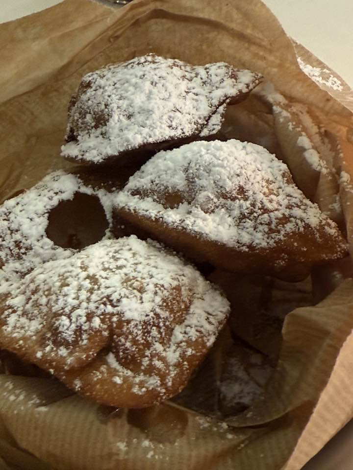Siamo al dolce, Ivan cala il sette bello con una castagnella da urlo, sfoglia sottile, fritta al momento, che fa esplodere in bocca un generoso ripieno di castagne e cioccolato. Ma con me c’è Gian Paolo Capaldo che è lievitista fuoriclasse, con panettone e pandoro, su cui a fine mese vi relazionerò a dovere. Vi dico solo che fa dei frollini cacao e sale maldon che sono una droga.