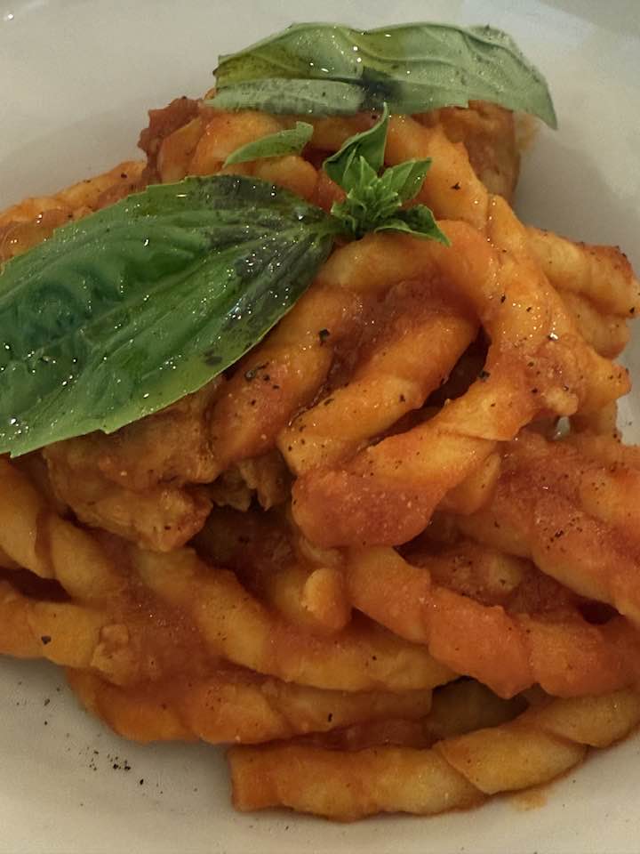 Mi sarei potuto fermare, ma chi sono io per rifiutare i fusilli avellinesi col sugo di salsiccione? E come tacere del pancotto di broccoli e salsiccia e della salsiccia coi chiodini appena raccolti (meno convincente solo la carne alla pizzaiola, un po’ asciutta, e col sugo troppo tirato).