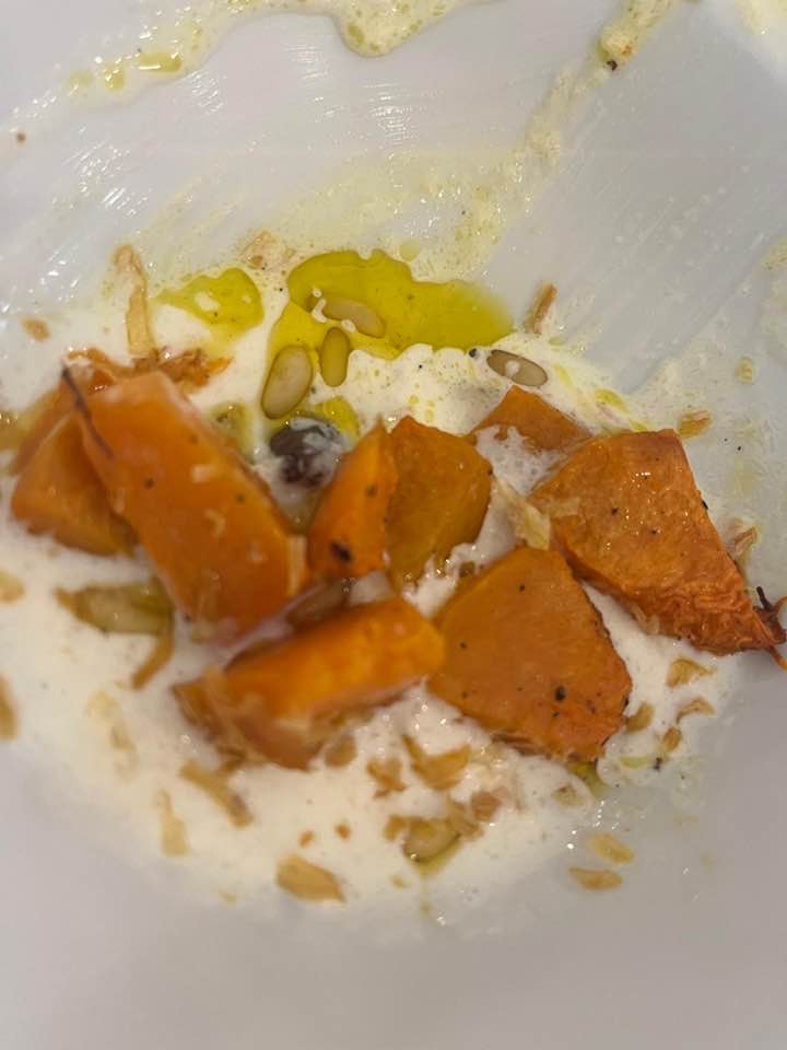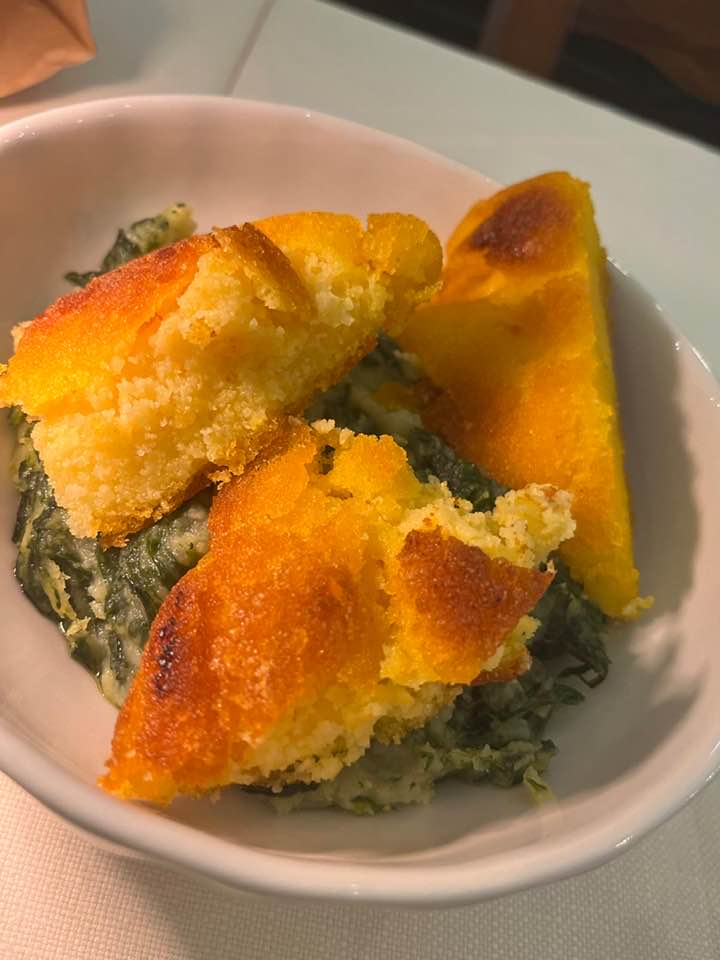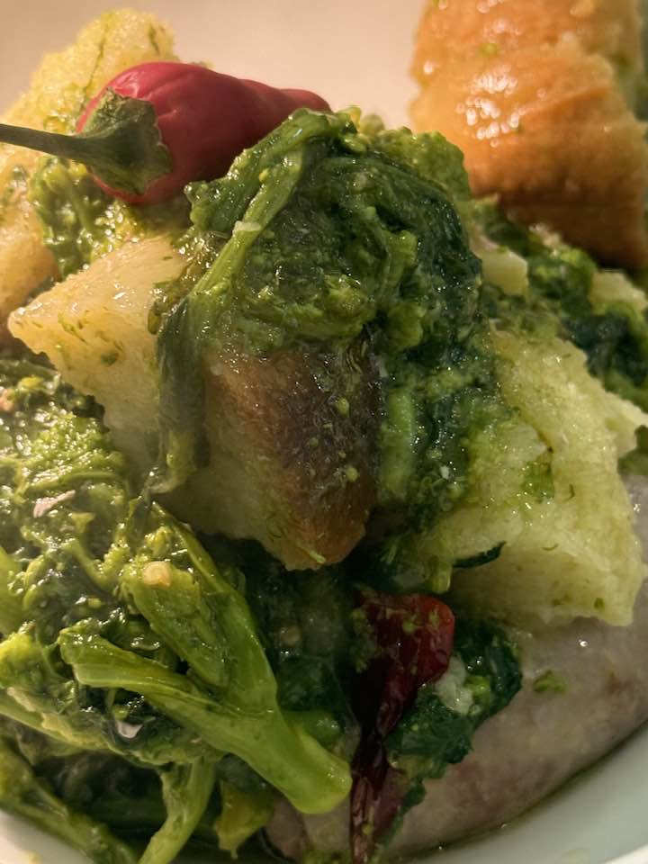 Pizza ionna e rape e patate tra le migliori mai mangiate, con la pizza croccante e saporitissima, che avrebbe trovato la morte sua con una fetta di candido lardo. Sorprendente la zucca con uvetta e pinoli e i fagioli quarantini, presidio slow food, serviti a zuppetta con origano e un filo di ravece. Buonissimi.