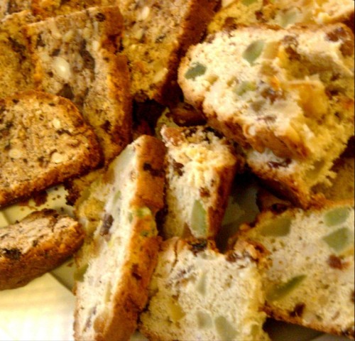 Ciò non toglie che quella Riserva otto-otto, che ha avuto la sorte di incontrare paste forti di formaggi stagionati e la spumosa, dorata anima di una caciocavalllo sardo, beh, quella la ricordo bene. Struggente, come il loro matrimonio: quei due sapevano a memoria dove volevano arrivare. Ci si commuove, anche tra cuori tormentati da estratti paurosi. Per questo ho distintamente sentito il pianto di un Montrachet, finalmente bianco ma disgraziatamente troppo pesante, sorpassato di slancio sulla tavola da un moscato d’Asti rifermentato in bottiglia che ha fatto piazza pulita dei quarantenni manco fosse Manassero all’Agusta Master. Freschezza e leggerezza: dello spumante (eccheccavolo sì, uno splendido “spumante”) e dei dolci che hanno invaso la tavola blu, nel blu dipinto di blu. Volare … Pandolci genovesi con canditi, con uvetta, con noci e cioccolato, sgonfiotti ripieni (marmellata, fichi, cioccolato?), crostate, bon bon al cacao in un giulebbe fanciullesco e territoriale da chiamare tutti gli amici, zii e parenti a far festa. E festa è stata.