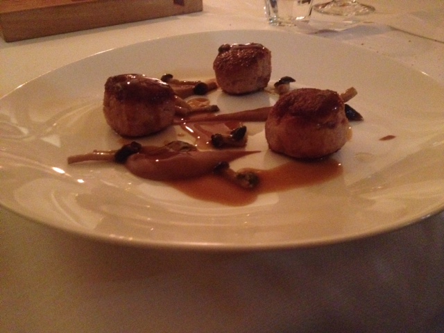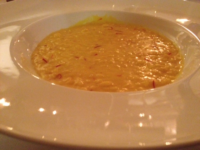 Abbiamo scelto il menù degustazione, ottimo il rapporto qualità-prezzo. Dopo gli antipasti della vecchia Milano rivisitati, tra cui i mondeghili (polpettine milanesi) che ai miei amici hanno tanto ricordato l’infanzia, puntualissimi sono arrivati due risotti: il tradizionalissimo ed intramontabile risotto con gli stimmi di zafferano, ed Il risotto vialone nano del Dott. Gennari, mantecato alla zucca, pompelmo e capperi, fresco e stuzzicante.