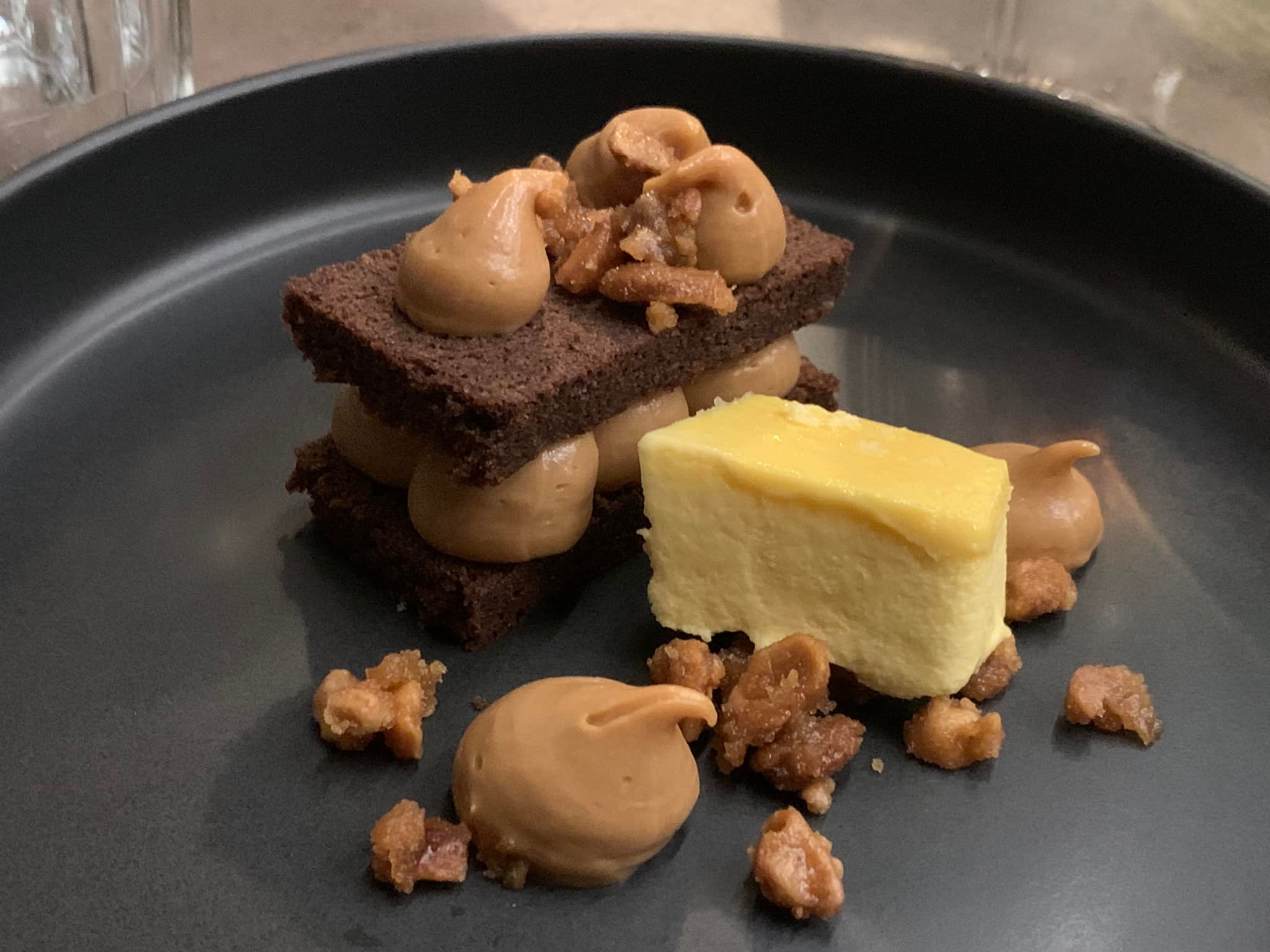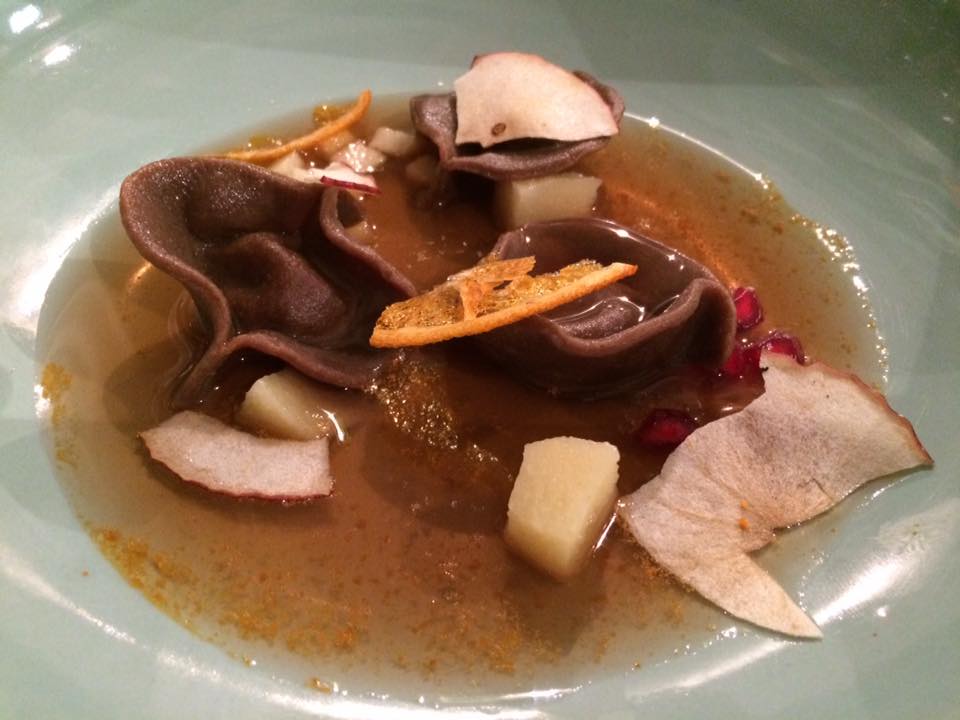La parte del dessert, che già ci aveva più che convinti nella prima fase di apertura di Epiro, continua a proporre una pasticceria moderna, poco zuccherina, ma non per questo meno appagante, come nel diplomatico con caramello salato, liquerizia e mandarino oppure nei più frugali ravioli di castagne in brodo speziato di frutta invernale.