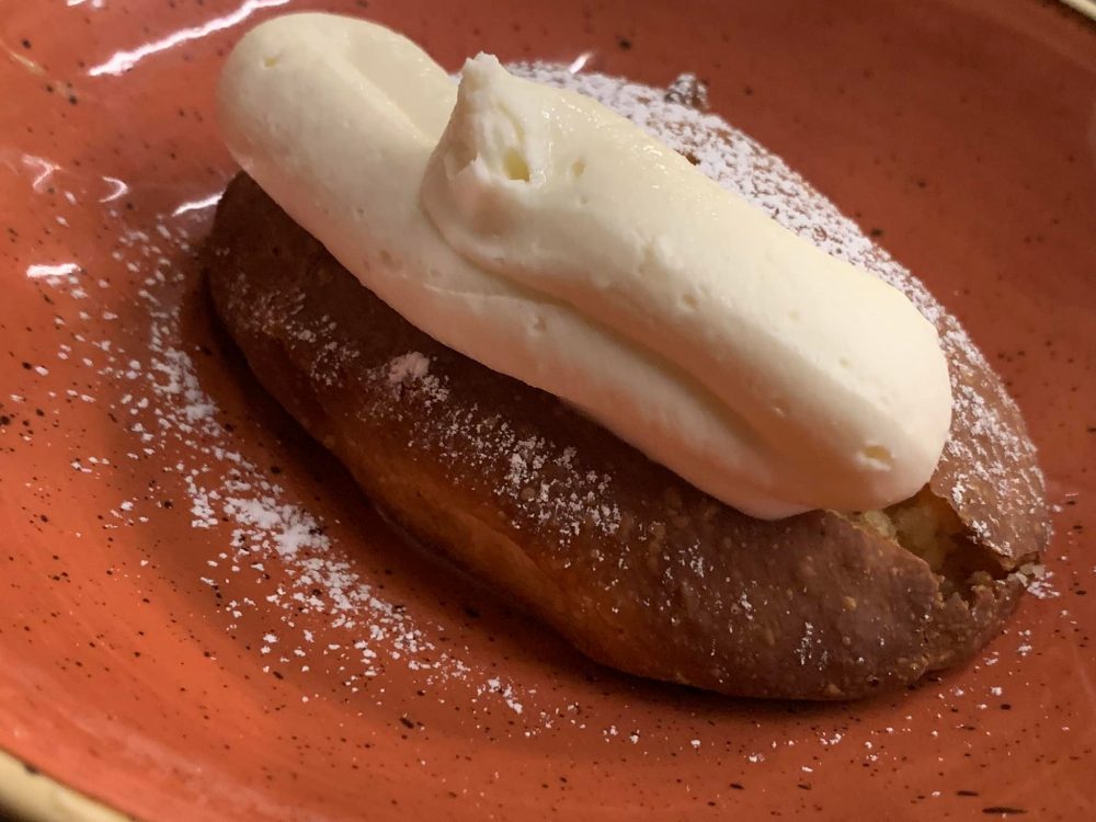 Capitolo a parte (come è sempre stato qui da Epiro) sul dessert. Anche questo cambia giornalmente, e a questo giro il gioco sui classici è stato appagante e divertente: millefoglie con crema super, maritozzo fragrante e golosissimo cremoso di cioccolato con caramello salato.