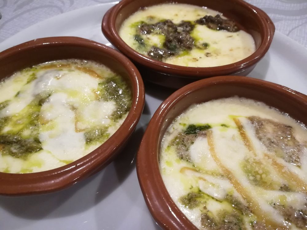 In tre piccoli pignatielli è la volta della provola al forno con una genovese di cipolle, con degli asparagi e con dei porcini irpini. Per completare l’antipasto ci vengono portati dei graditissimi pezzetti di Pizza Chiena con un filo del buonissimo olio extra vergine locale.