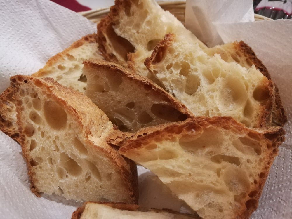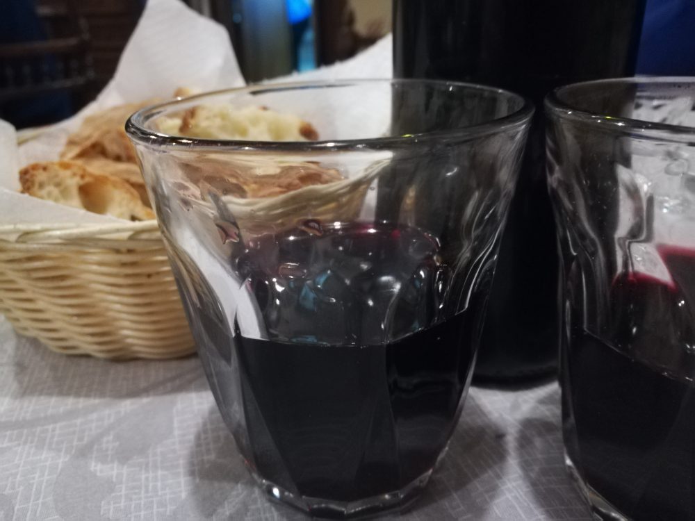 Lo ascoltiamo e ci facciamo portare una bottiglia direttamente dalla cantina in quanto il ragazzo ce ne aveva portata una dal frigo (inutile dire che il frigo avrebbe ibernato tutti i profumi ed il sapore di questo ottimo Rosso). Come consuetudine si parte con l’antipasto che inizia con un tagliere di profumati e saporiti salumi locali (Culatello, Capocollo e Sopressata) e un Pecorino stagionato in cantina. In una ciotola vengono serviti dei pezzetti di prosciutto crudo in olio extra vergine di oliva.