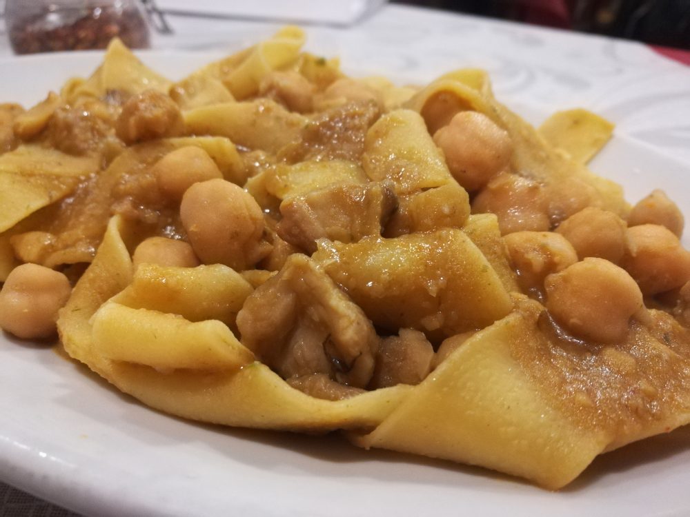 Per il primo la scelta ricade sulle Laine (grosse pappardelle artigianali) con Ceci e funghi Porcini.